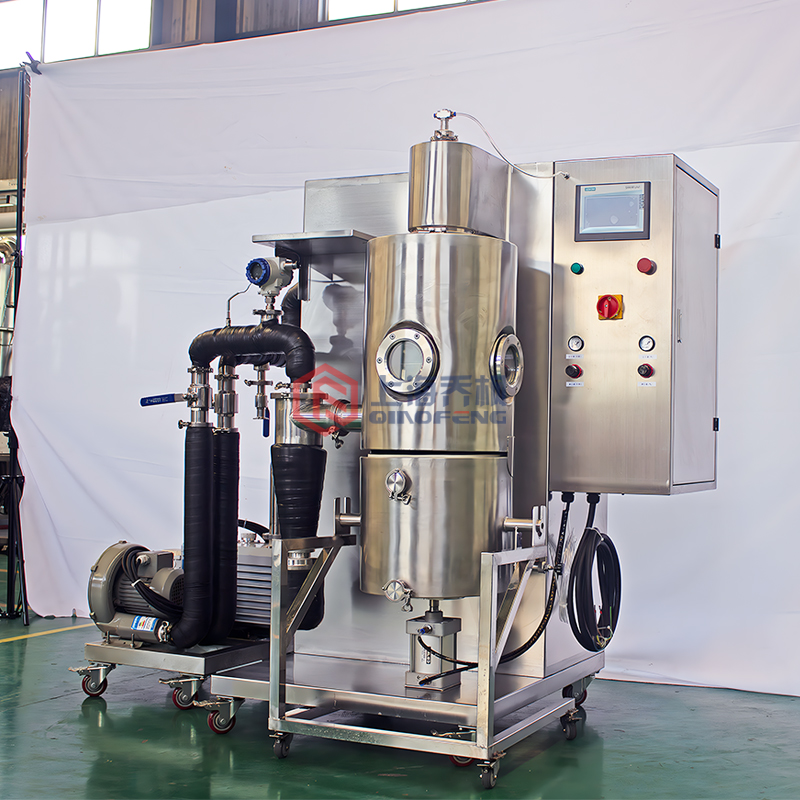 QFN-FSD-1 laboratory freeze spray dryer is suitable for heat sensitive, viscous, active materials and low temperature drying of materials with high sugar content, such as natural product extract of Chinese herbal medicine, dairy products, biological agents, enzyme preparations, fruit juice, polymer materials and so on.