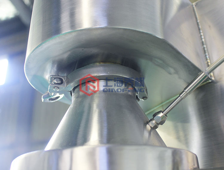 壓力噴霧干燥機機長時間運行或因操作不當,部分設備內會出現集料而影響正常運行,此時需停止工作進行清洗。對于干燥塔內集料的清理,應打開清掃門,用長把掃帚掃除漏斗形底部集料,打開出料閥,用自來水沖洗塔內。旋風分離器內集塵的清除,同樣需要打開旋風分離器,用掃帚清掃集料,必要時也需用水沖洗。對于袋式除塵器的清理,應打開控制開關,連續敲打,然后打開清洗門,敲打布袋除塵器,對噴霧干燥機zui后更換過濾袋。對于料漿管路系統的清理,應打開雙向過濾器的排污閥,清洗過濾器濾網和管路,然后打開料泵,以水代料,清洗泵管、穩壓包及管道。
